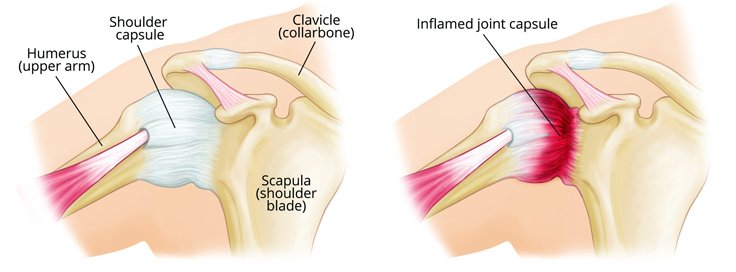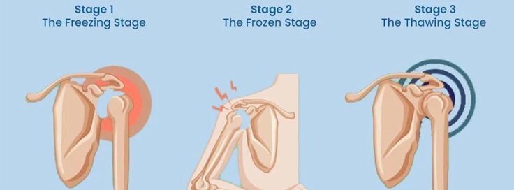 2. Frozen stage: Severe movement restriction but pain may decrease.